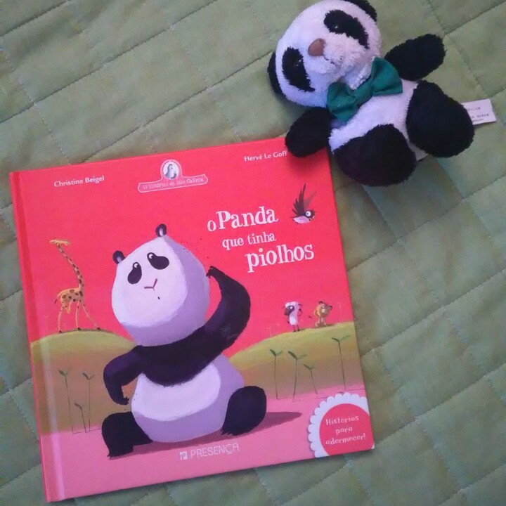 Em julho, na Feira do Livro de Braga, encontrei este livro a um preço muito simpático. Conhecendo a admiração desta criança pelo panda, achei que esta história iria funcionar com ela.